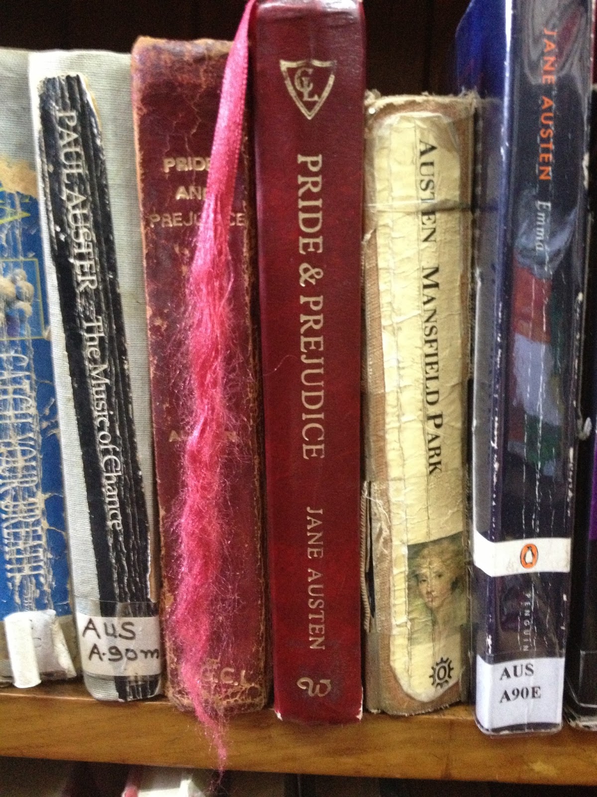 | I got super excited when I saw an old copy of Pride and Prejudice, thinking that maybe it was a first edition that the Brits may have left behind. Unfortunately, it was printed in 2002. I wonder why it looks so ancient! |